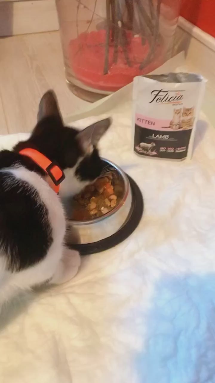 Hrana conservată fără cereale pentru pisici Felicia a fost special formulată de medicii veterinari și nutriționiști. Pregătiți-vă pentru o experiență unică de consum cu suport de taurină, care este o sursă de viață indispensabilă pentru prietenii noștri, și formula sa specială fără OMG-uri și soia.