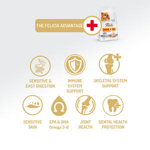 Felicia® este mai mult decât hrană pentru animale; Este o soluție nutrițională susținută științific care oferă o valoare măsurabilă pentru sănătatea câinelui tău.
